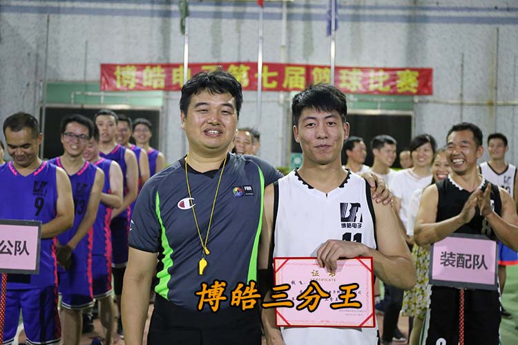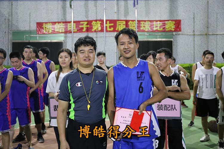第二場則是我們的冠亞軍之爭。辦公隊、印刷隊都是歷年強隊。俗話說的好“一山不容二虎”,兩隊的較量肯定激烈萬分。前面三節的比分你追我趕都相差無幾,第四節印刷隊出了差錯,整個隊伍的氣勢一落千丈,比分一度落后。裁判的哨聲響起比賽結束最后辦公隊以20分的優勢拿下冠軍,辦公室隊成為2019年博皓電子第七屆籃球比賽的冠軍。