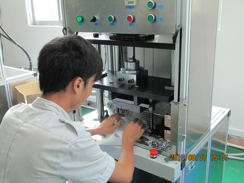 ④通過壓合機將塑膠鍵帽和硅膠內襯按鍵裝配在一起。