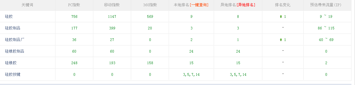但如果只是優化“硅膠按鍵”對博皓網站是不夠的,網站排名有百度權重高低來進行搜索引擎優化關鍵因素,所以我們博皓還選擇“硅膠、硅膠制品、硅膠制品廠、硅橡膠制品、硅橡膠”,這些都是有百度指數的,優化難度很高,不是一朝一夕可以優化上的,靠的是持之以恒的堅持執行去完成。