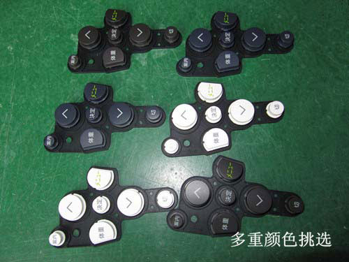 產品是出口日本的體重測量儀按鍵,主要是采用硅膠做成彈性襯托表面增加塑膠按鈕的一款P+R結構設計特點。表面的塑膠鍵帽可以根據客戶的需求進行顏色的調整,呈現多種多樣的硅膠制品外觀圖。
