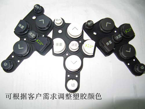 - 產品簡介:產品是出口日本的體重測量儀按鍵,主要是采用硅膠做成彈性襯托表面增加塑膠按鈕的一款P+R結構設計特點,美觀耐用。