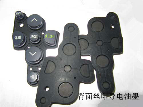 產品底部的硅膠按鍵除了取到內襯按鈕的作用以外,還增加了背面絲印導電油墨的工序,使產品具體導通電源的功能。