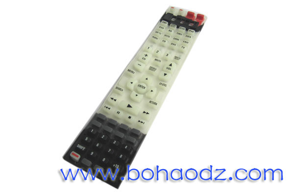 - 產品簡介:此款遙控器按鍵,除采用傳的生產工藝:成型、絲印、噴涂外,其主要特色是,在硅膠原料中加入了一定比例的熒光粉,使用按鍵在黑暗的環境下發出夜光,這樣一來,晚上看電視不開燈也能正常使用遙控器了,這種設計對于喜歡關燈看電視的那一部份人群來說,不得不說很是貼心。