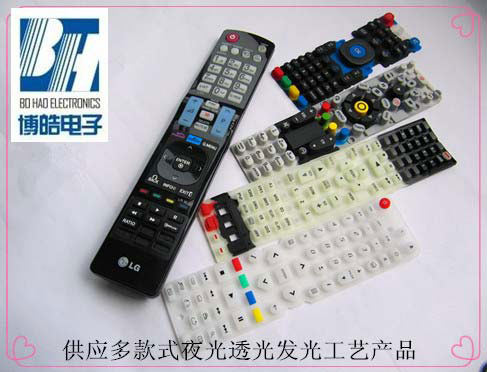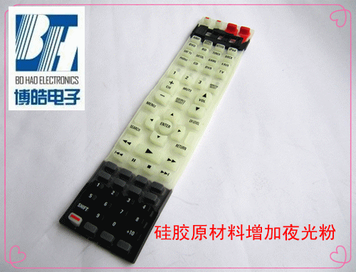 - 產品簡介:夜光硅膠按鍵指在硅膠原料中加入了一定比例的熒光粉,使用硅膠按鍵能夠在黑暗的環境下發出夜光。使用者在晚上不開燈光的情況下,可以通過按鍵表面的夜光效果可以比較找到遙控器的位置。